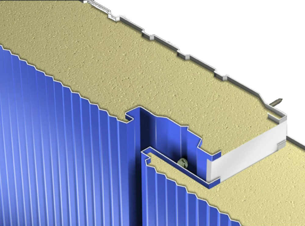 Styk wzdłużny płyt wielowarstwowych tzw. zamek na najistotniejsze znaczenie w obniżeniu kosztów montażu jak i eksploatacji obiektu. Zamek odkryty ( widoczny łącznik) oraz zamek ukryty (niewidoczny łącznik) stosowany jest w płytach ściennych. W płytach dachowych z rdzeniem PUR i PIR stosujemy połączenie na zakładkę, w płytach rdzeniem ze styropianu – połączenie na listwę U jak i na zakładkę. Podobne rozwiązanie stosujemy również w płytach z rdzeniem z wełny mineralnej.